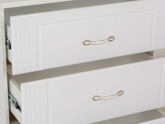 Модульная серия «Виктория» выполнена в стиле «Классика». Особенность серии - фасады МДФ с фрезеровкой, петли с доводчиком на всех фасадах, шариковые направляющие, ручки металлические с белой вставкой, покрытие золото.