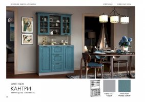 Очарование простой деревенской жизни привносит в дом буфет «Кантри». Отделка нежных холодных оттенков создает атмосферу чистоты и свежести, текстура массива дерева смотрится натурально и дорого. Это очень удобная мебель! В ней предусмотрено место для как нарядных чайных сервизов (на полочках за стеком), так и для обычных кастрюль (в закрытых шкафчиках).