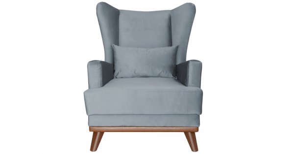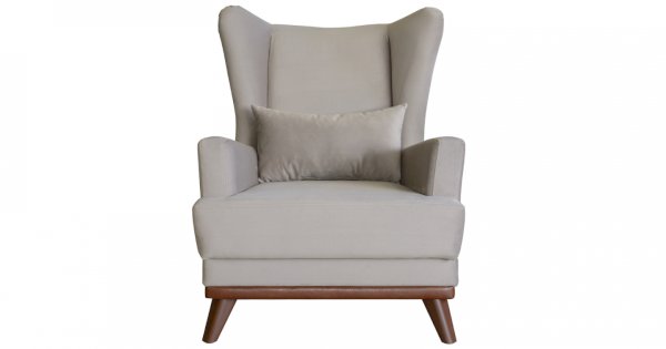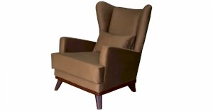 Высокая спинка с наклоном и мягкие подлокотники обеспечивают удобную посадку, дополнительный комфорт создает декоративная подушка. Царга кресла обтянута искусственной кожей в цвет опорам.