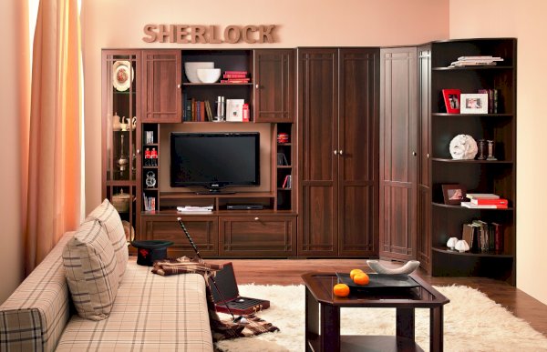 Необычная гостиная «Sherlock» (Шерлок), выполненная в брутальном английском стиле, создаст строгое и правильное настроение времен конца 19 века. Изюминка данной коллекции - это необычные для мебели рамочные фасады, дополненные тонкими накладками, что придает гостиной дополнительный шарм. Классика актуальна во все времена и не подвержена веяниям изменчивой моды. Поэтому, классическая коллекция корпусной мебели для гостиной SHERLOCK всегда будет выглядеть стильно в Вашей гостиной.
