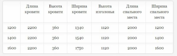 Кровать доступна в 3-х размерах: 1200, 1400 и 1600 мм.