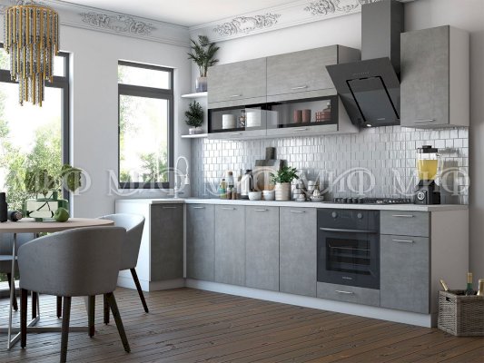 Кухня с фасадами МДФ «бетон» смотрится оригинально и необычно. Стиль «Лофт» — это совершенно новое и ультрасовременное дизайнерское направление. Такая цветовая гамма успешна и в стиле минимализм. Кухня «Техно» бетон позволит вам выразить свою индивидуальность и неординарность смелых решений стиля.
