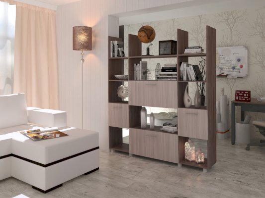 Данное изображение представлено в следующих цветах ЛДСП: корпус - Ясень Шимо тёмный, фасады - Ясень Шимо светлый.