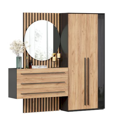 Цвет фасада: Дуб золотой/Черный шагрень лак глянец