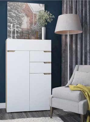 Отсутствие ручек является особенностью серии "Анталия", что придает современный и лаконичный внешний вид. В состав гостиной "Анталия" входит вместительный шкаф, а добавив комод можно получить еще больше места для хранения.