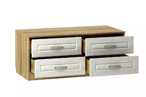 Тумба Оливия НМ 040.48 Ф может быть частью набора или выступать в качестве самостоятельного элемента гостиной. На широкой столешнице достаточно места для размещения и ТВ, и предметов декора. Тумба оборудована четырьмя выдвижными ящиками для хранения книг, документов и аксессуаров.