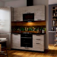 Стильная кухня, выполненная в модном декоре "бетон пайн", удачно вписывается в городской индустриальный стиль и выглядит очень необычно и оригинально. Отличительная черта цвета в сочетании светлой бетонной поверхности, визуально расширяющей пространство, и состаренной древесины. Кухня с лёгкостью впишется в любой эклектичный интерьер. Красивое решение по лучшей цене — это кухня Сканди 1,6 м.