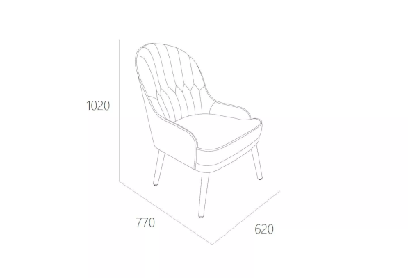 Кресло имеет оптимальную по высоте спинку, чтобы не причинять неудобств, если душевные посиделки с друзьями затянулись. Высокие ножки имеют изящный изгиб и выполнены из дерева, а каркас из березовой фанеры. Сиденье состоит из ППУ и мебельного ремня, что создаст комфортное размещение.