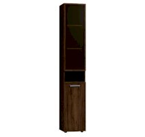Высокий шкаф для хранения идеально подходит для комнаты подростков, в которой слишком много разнообразных и таких "нужных вещей". Верхний рамочный фасад с тонированным стеклом открывается за раму, нижний фасад Контур открывается за серую ручку из массива. Верхний и нижний фасады можно перенавесить на левую и на правую стороны.
