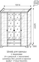 Шкаф для одежды 4-х дверный с ящиками с зеркалом №2